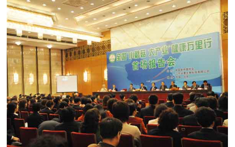 2008年4月29日,全國“小蘑菇 大產(chǎn)業(yè)”健康萬里行活動首場報告會在北京人民大會堂舉行。由此,健康萬里行活動拉開了序幕。